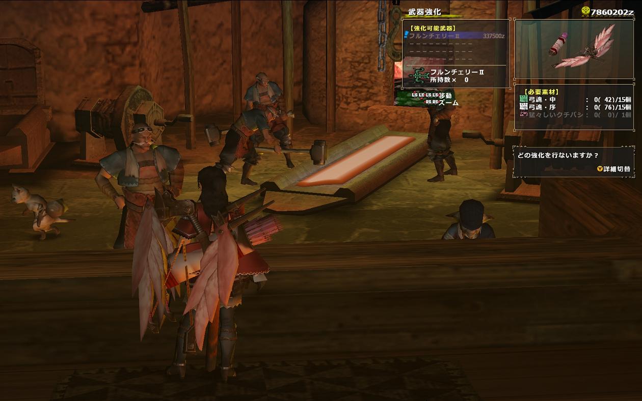 あと、他のトコでの情報だとエクエスFXが出たんだとか。剣士は睡眠剣、ガンナーは圧力⇒装填になって元々付いてる精密射撃が+1らしくて狙い撃ち装備にかなり優秀かもしれないです!